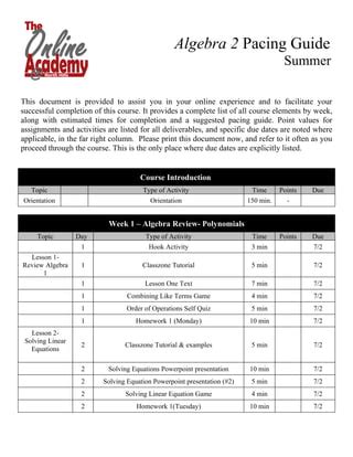 Read Online common core standards algebra 2 pacing guide Tutorial Free Reading PDF